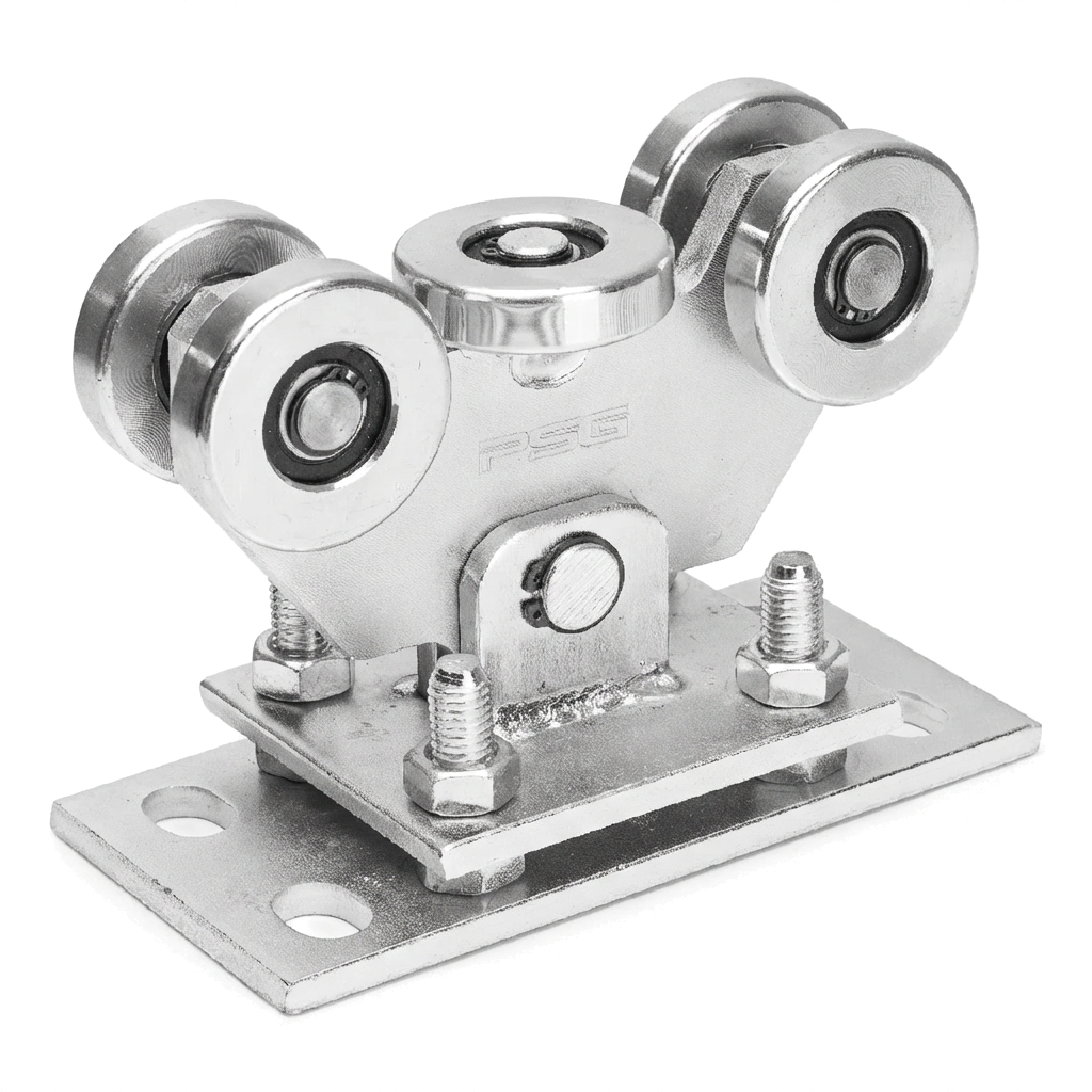 Vaunu on varustettu 5 metallirenkaalla, joista yksi on vaakasuuntainen portin ohjauksen vakauttamiseksi. Heiluri-rakenne — vaunu on yhdistetty alustaan tapilla, jolloin se mukautuu automaattisesti liukuportin kiskoon. Korkeussäätö tapahtuu ruuveilla, mikä mahdollistaa portin tason tarkan asettamisen asennuksen aikana.