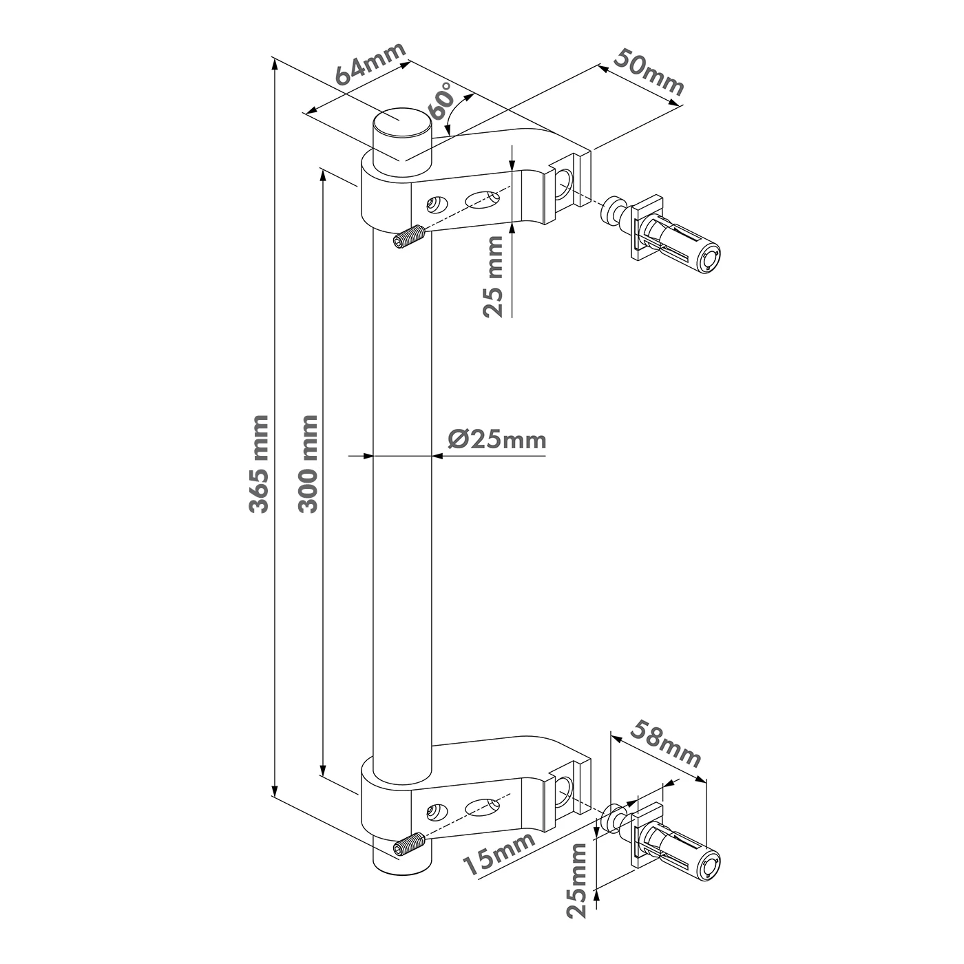 Locinox – kiinteä porttikahva anodisoitu alumiini 365 mm, musta, yksipuolinen 60°