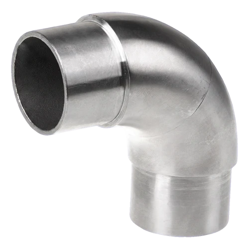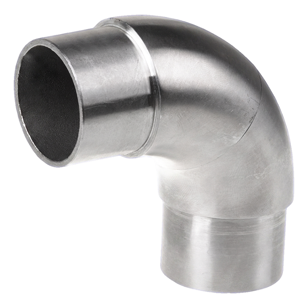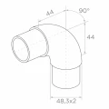 Loiva kaidekulmakappale liimattava 90° ruostumaton teräs AISI 304 – putki 48,3 mm satiini