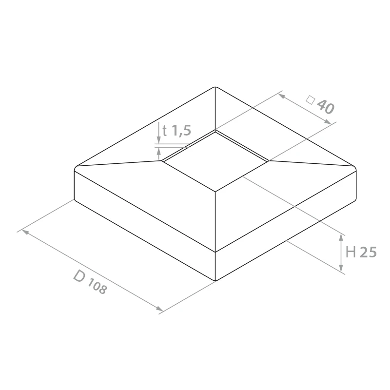 Nelikulmainen peitelevy kaidepilareihin, joiden poikkileikkaus on 40×40 mm. Valmistettu ruostumattomasta teräksestä AISI 316 satiinipinnalla, takaa elegantin ja kestävän asennuspaikkojen, profiilin jalkojen ja teknisten aukkojen peitteen. Teräslaatuun 316 ansiosta peitelevy takaa korkean korroosionkestävyyden — myös kosteudelle ja suolalle alttiissa ympäristöissä, mikä tekee siitä ihanteellisen ratkaisun sekä sisä- että ulkokäyttöön.