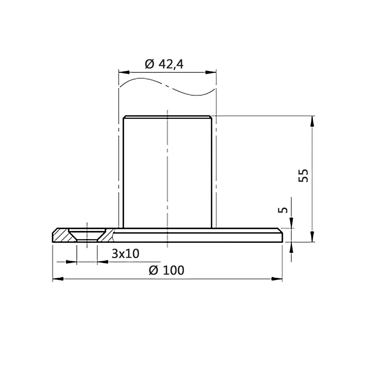 - Perustan halkaisija (laippa): Ø 100 mm