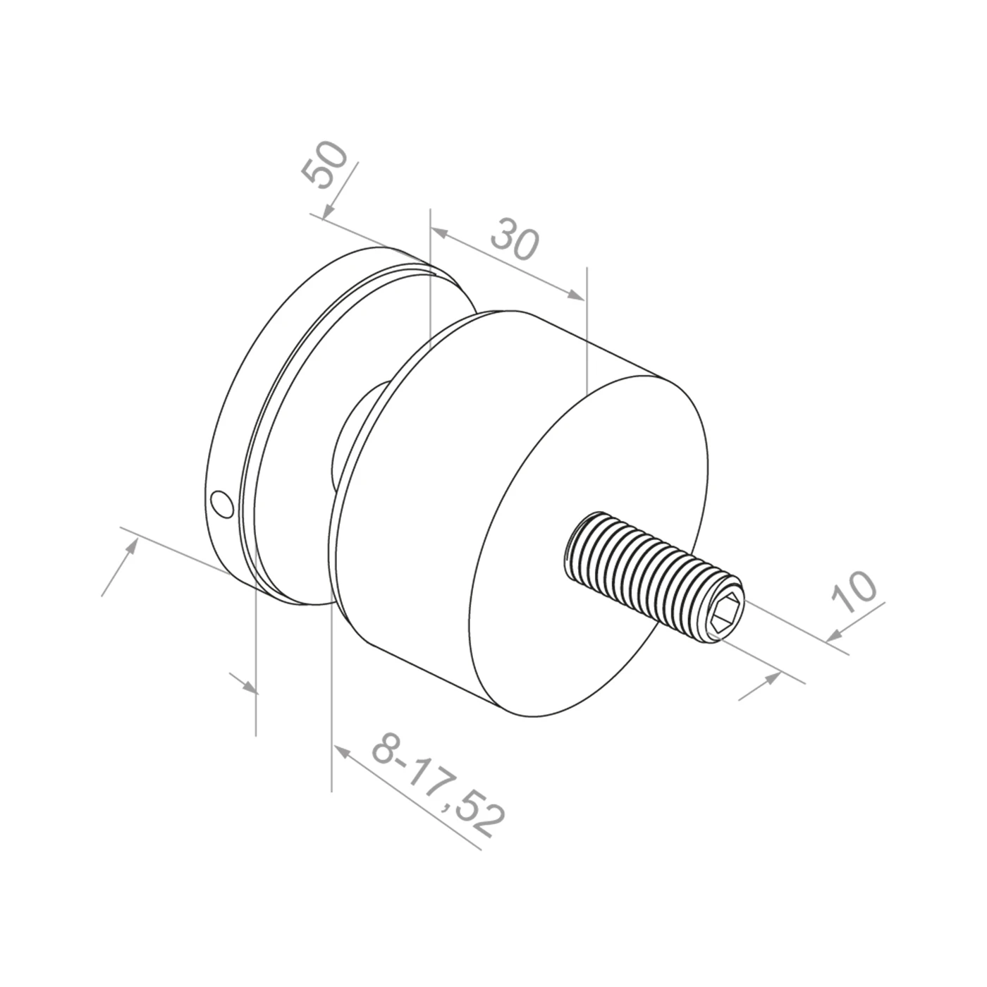 Kiinnike on tarkoitettu yksinomaan asennettavaksi tasaisille pinnoille (seinät, pilarit, teräsprofiilit). Kierteinen tappi M10 kuusiokoloavaimella mahdollistaa tarkan kiristyksen ja säädön alustassa, ja puristuslevy pitää lasitaulun luotettavasti paikallaan valitussa paksuusalueessa.