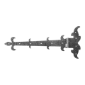 Teräsvalmistus takaa korkean mekaanisen lujuuden ja kestävyyden. Koristeet — lilian kuvio varren päässä ja koristekäyrät — tekevät tästä saranasta erinomaisen valinnan rustiikkityylisiin, maalaismaisiin tai historiallisiin portteihin ja aidanportteihin.