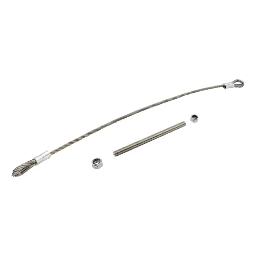 - Ruostumattomasta teräksestä valmistettu köysi silmukoilla (kausoilla) molemmissa päissä — 1 kpl