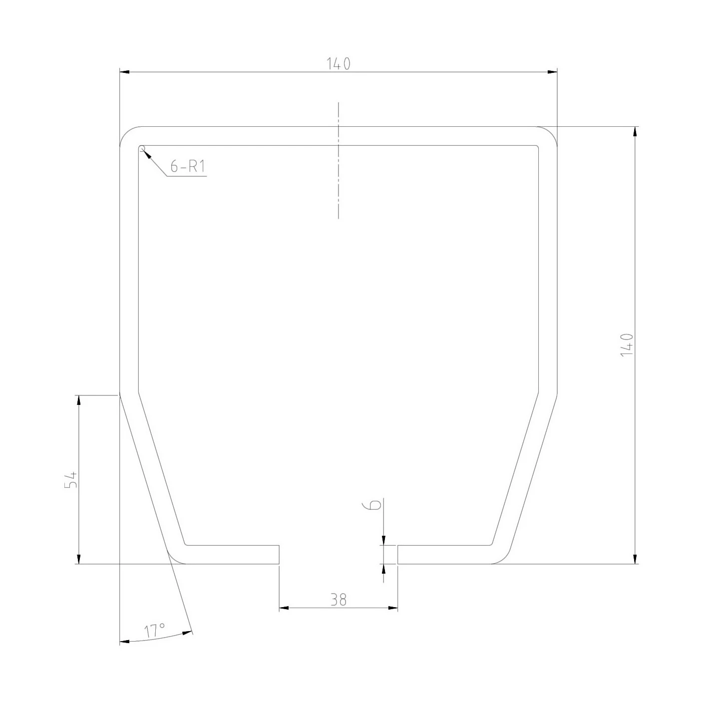 - Sisäpuolen pyöristyssäde: R1 mm