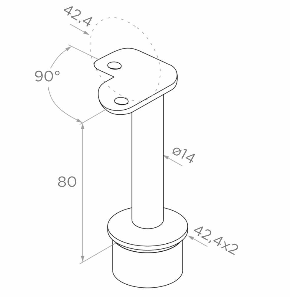 - Asennusmitta jalusta (pylväsputki): 42,4 × 2 mm