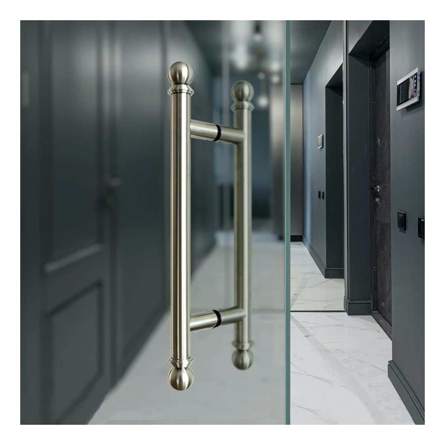 Kaksipuolinen PSG ovenkahva on tyylikäs ovenkahva klassisella muotoilulla, valmistettu kokonaan korkealaatuisesta AISI 304 ruostumattomasta teräksestä harjatulla viimeistelyllä. Koristepäät pallomuodossa antavat sille tyylikästä, edustavan luonteen — ihanteellinen kaupallisiin kohteisiin, toimistoihin, hotelleihin ja eksklusiivisiin asuintiloihin.