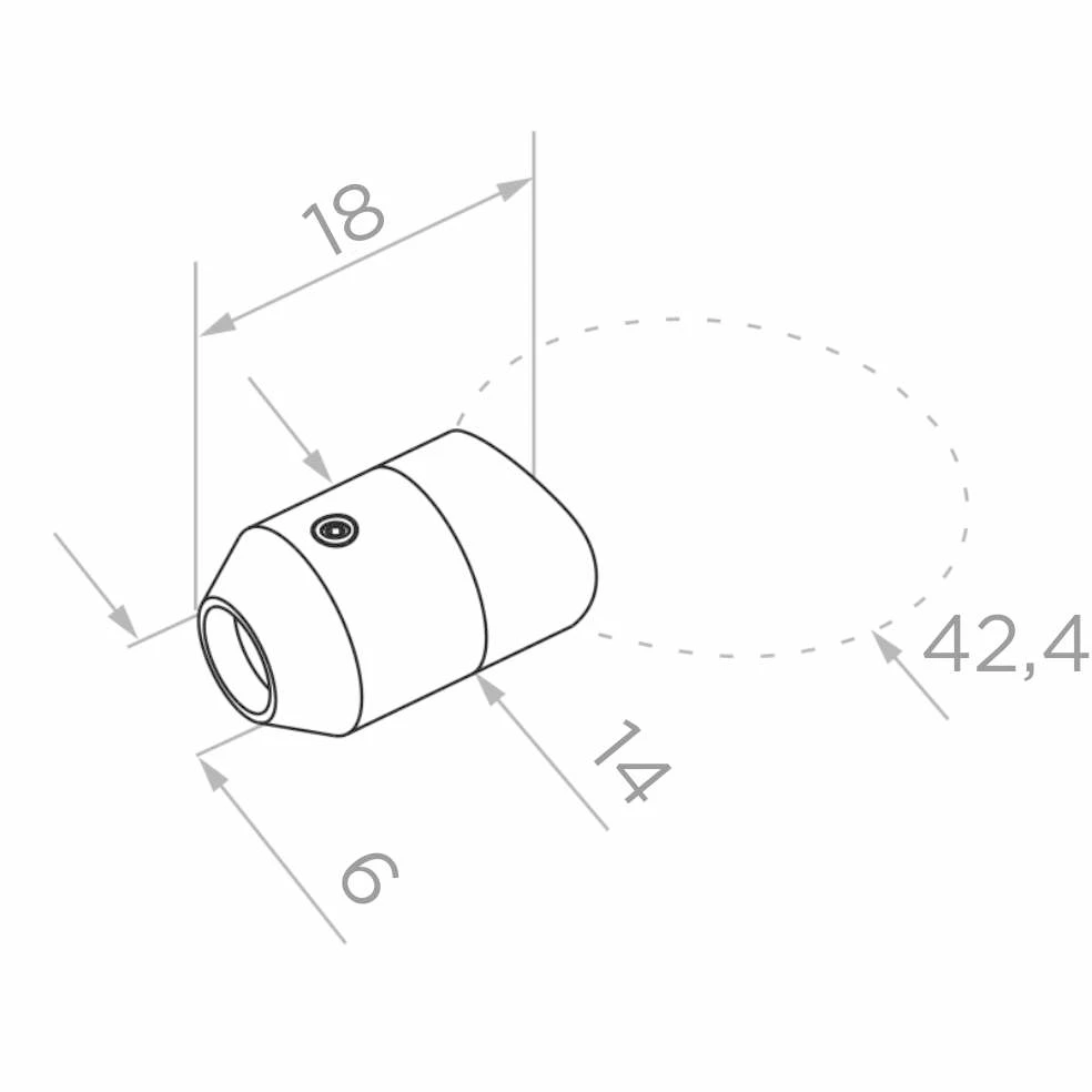 Läpikulkivienti köydelle Ø 6 mm tarkoitettu asennukseen putkeen, jonka halkaisija on 42,4 mm tai suoraan tasopintaan (esim. seinään). Toimii osana köysijärjestelmää, joka muodostaa teräskaiteiden täytön. Rakenne mahdollistaa asennuksen ruuvauksella — ilman hitsaustarvetta — mikä lyhentää merkittävästi järjestelmäkaiteen rakennusaikaa ja vähentää asennuksen työkustannuksia.