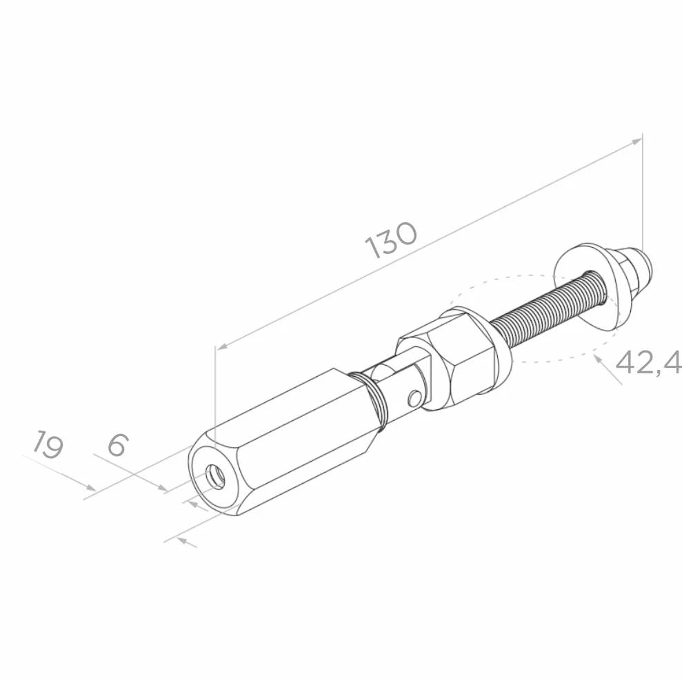 Tuki toimii vaijerin alkuelementtinä kaiteen täyttöjärjestelmässä. Yhteensopiva 42,4 mm halkaisijaltaan olevien kaidepylväiden kanssa — suosituin standardi ruostumattomissa kaidejärjestelmissä. Mahdollisuus kiinnittää tasoon tekee siitä universaalin ratkaisun sekä kantavaa putkea käyttävissä sovelluksissa että konfiguraatioissa, joissa vaijeri kiinnitetään suoraan seiniin, pylväisiin tai rakenneelementteihin.