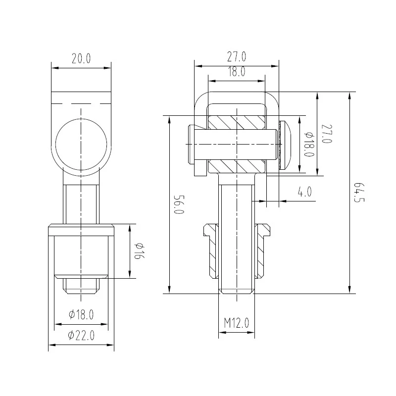 Tangon M12-mutterin ansiosta saranaa voidaan säätää jopa asennuksen jälkeen — esim. kun rakenne painuu painon alla tai metalli muuttaa mitoitusta äärimmäisten lämpötilojen vaikutuksesta. Riittää kiristää tai löysätä mutteri palauttaaksesi siiven oikean asennon. Sallittu kuormitus saranapari siivessä pituudelta 2 m on 40 kg.