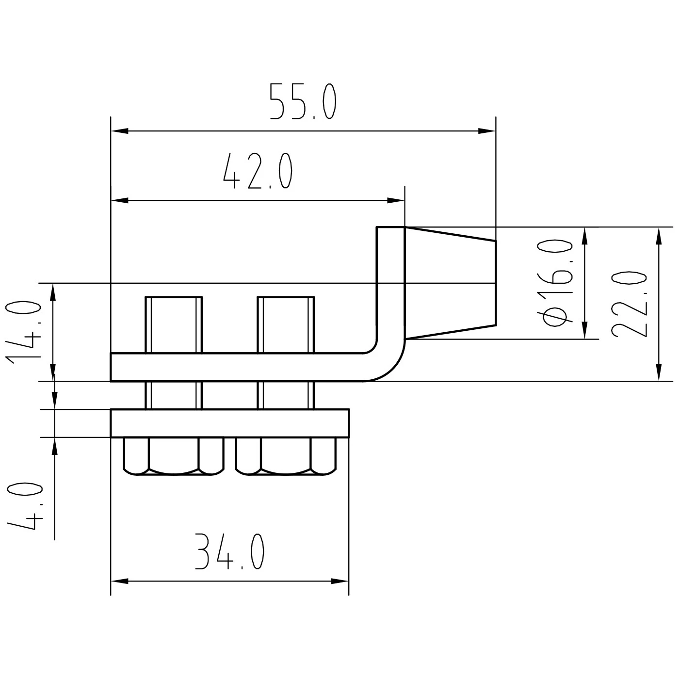 - Kiinnikkeen pituus (taivutukseen): 42 mm