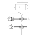 - Kokonaispituus (tapin akselilta kierteen päähän): 180 mm