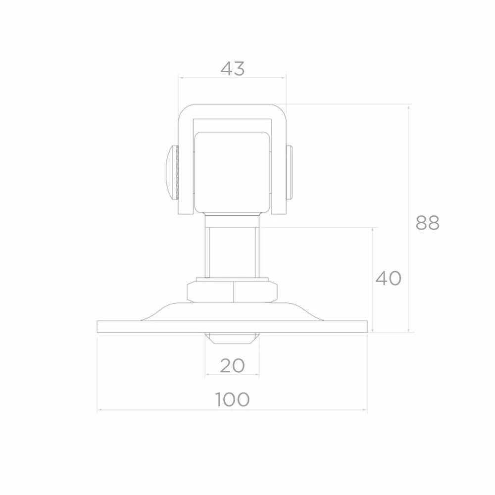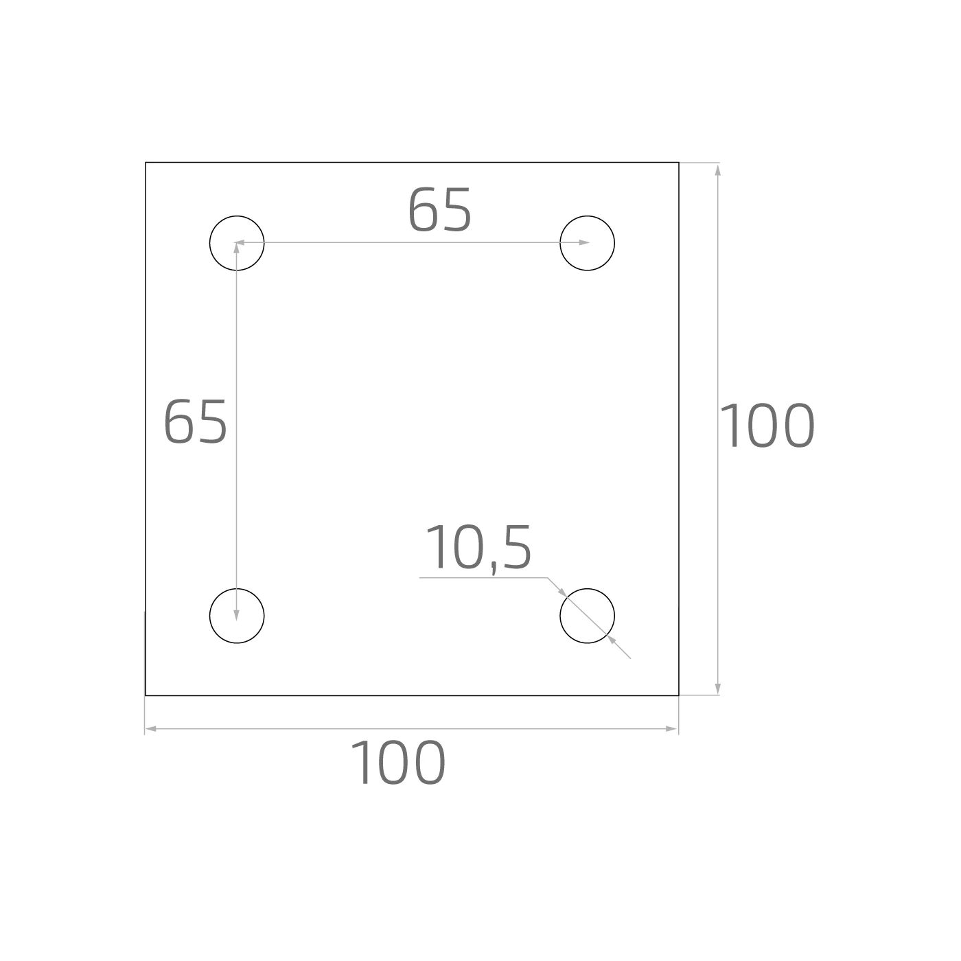 - Kiinnityslevy: 100 × 100 × 4 mm