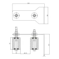 Johde asennetaan aitapylvään tai seinän yläosaan, jossa se ympäröi portin siiven kahdella pyörällä. Säädettävä pyörien etäisyys (valo 49–79 mm) mahdollistaa sovittamisen erilaisiin suljettuihin profiileihin, joita käytetään liukuporteissa. M12-ruuvit mahdollistavat pyörien varman kiristämisen, ja pitkänomaiset asennusreiät seinäkiinnikkeessä helpottavat tarkkaa vaakasuuntausta.