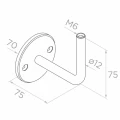 Kiinnikkeessä ei ole kiinnityslevyä — kaidepylväs liitetään varteen M6-kierteen avulla. Tämä on monipuolinen rakenne, joka soveltuu sekä asuinrakentamiseen että julkisiin rakennuksiin.