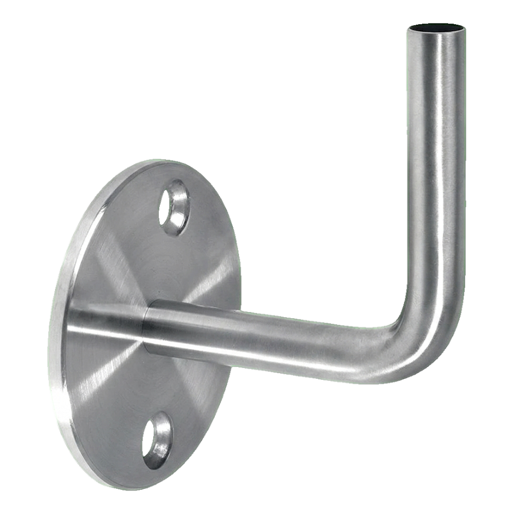Yksinkertainen, tukeva kaidepylvään seinäkiinnike kaidepylvään kiinnittämiseen suoraan seinään, pylvään halkaisija Ø42,4 mm. Ruostumattomasta AISI 304 teräksestä valmistettu harjatulla viimeistelyllä tuote takaa vuosien kestävyyden ja esteettisen ulkonäön ilman lisähuoltoa. L-kirjaimen muotoinen rakenne pyöreällä kiinnitysrosetilla mahdollistaa nopean ja varman asennuksen kahdesta kiinnityspisteestä — ihanteellinen ratkaisu asennusryhmille, jotka toteuttavat sisä- ja ulkokaiteita.