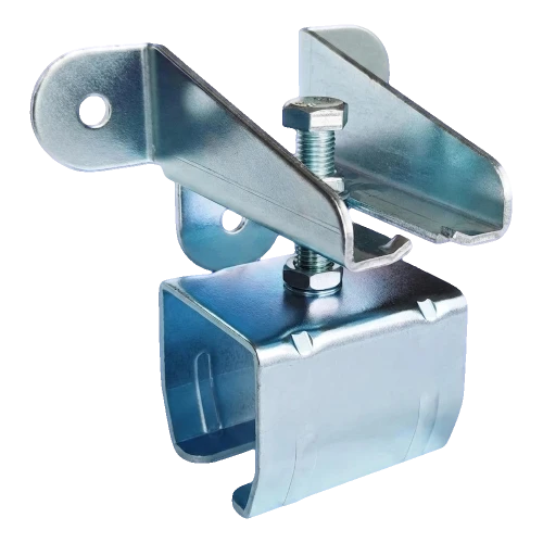 Seinäkiinnike profiilille 64×68 mm PSG-merkiltä on vankka ajoratakiskon ripustusosa, jota käytetään riippuporttijärjestelmissä. Valmistettu paksusta teräslevystä, jonka paksuus on 4 mm ja jossa on sinkkipinnoite, se takaa kestävän ja vakaan kiskon kiinnityksen seinään tai yläpuoliseen rakenteeseen. M16-ruuvin ja muttereiden ansiosta asentaja saa sujuvan etäisyyden säädön seinästä välillä 52–125 mm, mikä mahdollistaa portin ajoradan tarkan asettamisen jopa epätasaiselle asennuspinnalle.