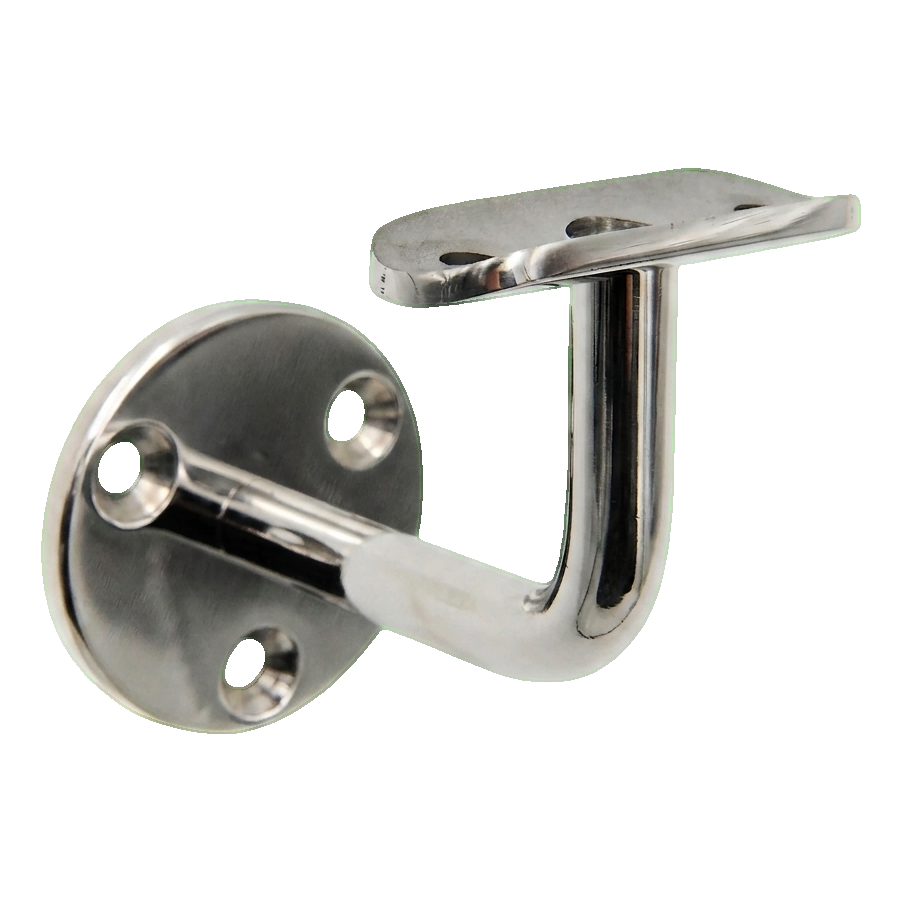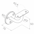 Ylälevy asennusreikien kanssa muodostaa vakaan tuen käsijohteelle, ja profiloitu varsi halkaisijaltaan ø12 mm takaa jäykkyyden ja kiinnityksen varmuuden. Ruostumattoman teräksen kiillotettu pinta on erittäin helppo pitää puhtaana — useimmat liat saat pois kuivalla pehmeällä mikrokuituliinalla, ja rasvaiset tahrat erityisellä ruostumattoman teräksen puhdistusaineella.