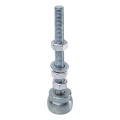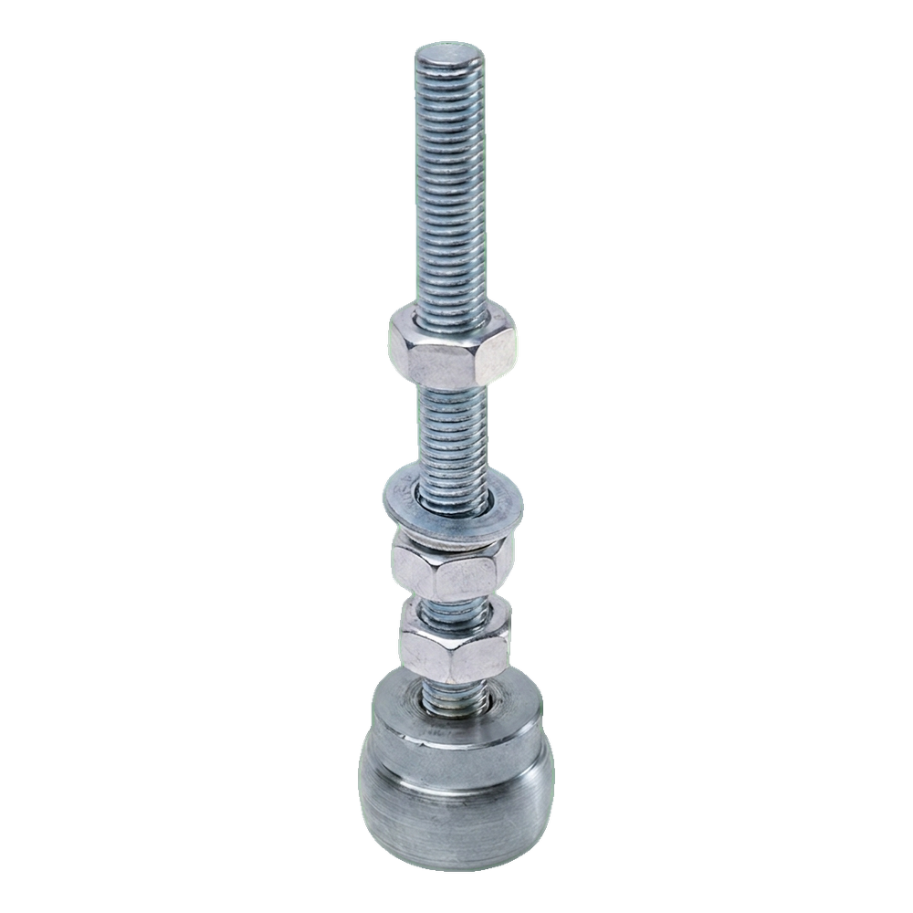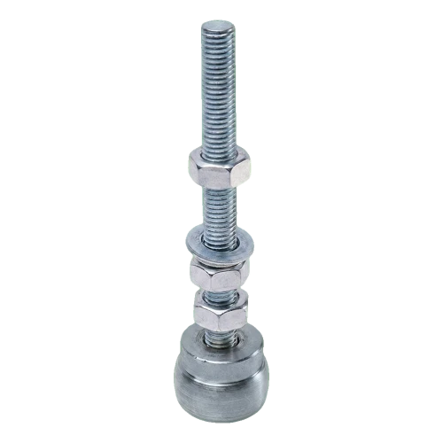 Ohjain koostuu kierretangosta M12 kahdella mutterilla ja aluslevyllä, jotka mahdollistavat korkeuden säädön ja varman kiinnityksen portin alaprofiiliin. Alaosa on varustettu teräksisellä ohjausrullalla, jonka halkaisija on 25 mm ja joka liikkuu alakiskossa pitäen portin siiven oikealla uralla. Kierretyn säädön ansiosta asentaja voi tarkasti asettaa rullaa ja kiskoa välisen välyn - mikä vaikuttaa portin hiljaiseen ja sujuvaan toimintaan.