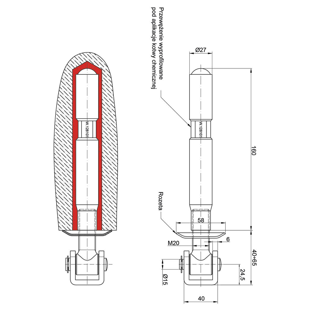 Sarja sisältää ankkurin pituudeltaan 160 mm ja halkaisijaltaan fi 27 mm sisäkierteellä M20 sekä täydellisen säädettävän saranan M20 ruusukkeella. Saranan säätöalue on 40–65 mm, mikä mahdollistaa portin tai aitaportin siiven tarkan asemoinnin ankkurin asennuksen jälkeen. Ruusuke halkaisijaltaan 58 mm peittää kiinnityspisteen ja antaa asennukselle esteettisen, viimeistellyn ulkonäön.