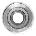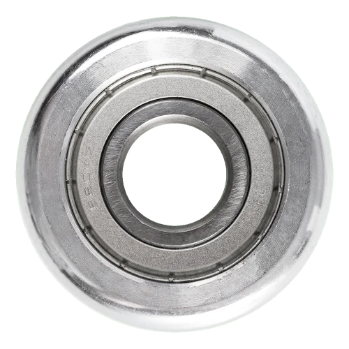 Reiän sisään on asennettu kuulalaakeri suojuksilla ZZ, mikä takaa sujuvan, hiljaisen pyörimisen sekä pitkän käyttöiän ilman tiheää voitelua. Kiinnitysrengas (Seeger-tyyppi) varmistaa laakerin pysymisen paikallaan työn aikana.