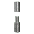 Sarana koostuu kahdesta elementistä — holkista (yläosa pesällä) sekä tapista sylinterillä (alaosa kiertyvälla tapilla). Vierinty profiili takaa molempien osien tarkan istuvuuden, mikä johtaa minimaalisiin väleihin ja saranan hiljaiseen toimintaan. Teräsinen pinta mahdollistaa lisäkorroosiosuojauksen — maalauksen tai sinkkauksen — käyttöolosuhteiden mukaan.