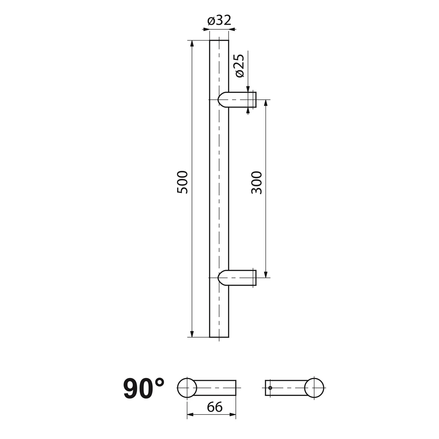 Yksisuuntainen ovenkahva pituudeltaan 500 mm pyöreällä putkella ruostumattomasta teräksestä AISI 304 elegantilla satiiniviimeistelyllä. Yleiskäyttöinen kahva, joka on tarkoitettu asennettavaksi lasi-, puu-, metalli- ja PVC-oviin — ihanteellinen ratkaisu asennusyrityksille, jotka toteuttavat projekteja sekä liike- että asuinrakennuksissa.