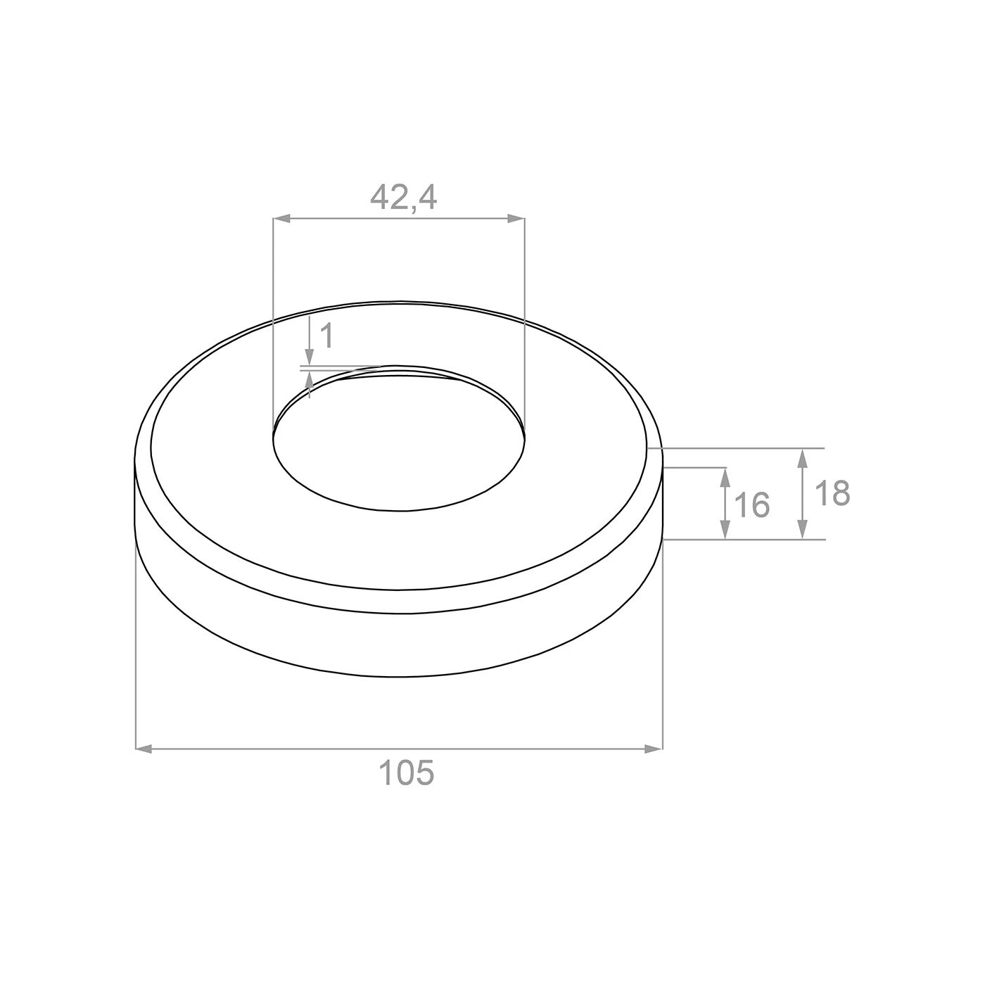 Peiteruusuke halk. 105/42,4 mm on viimeistelyosa, joka on tarkoitettu asennusaukkojen peittämiseen ruostumattomissa kaiteissa. Tarkka sovitus 42,4 mm halkaisijaltaan oleviin putkiin peittää tehokkaasti pylväiden läpivientikohdat lattian, katon tai portaiden askelmien läpi, antaen rakenteelle ammattimaisen ja esteettisen ulkonäön.
