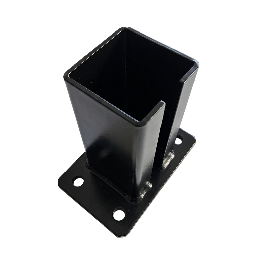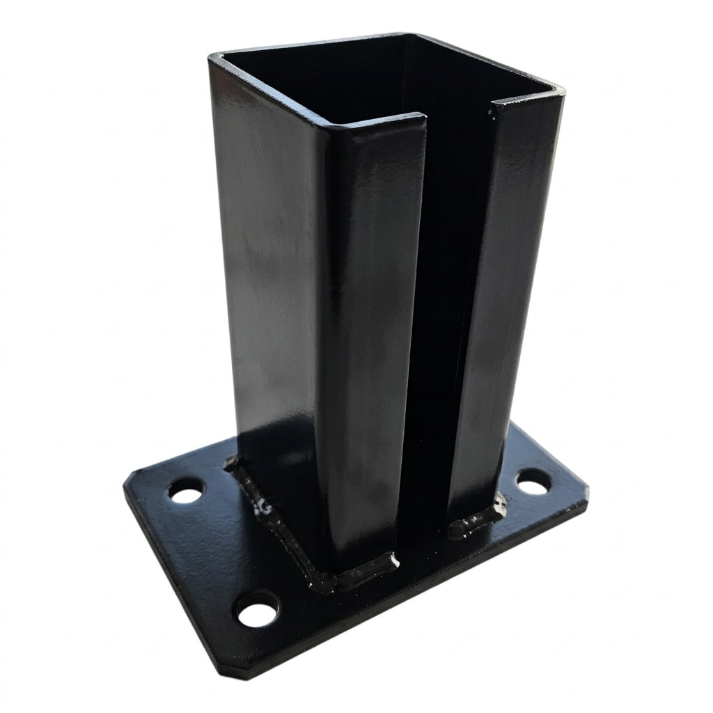 Teräsjalusta (kanta) portti- ja aitatolpalle 80×80 mm mustassa värissä RAL 9005 on kestävä asennuselementti, joka mahdollistaa profiilitolppien nopean ja varman kiinnityksen betonipintoihin, sokkelin päälle sekä muille kovettuneille alustoille. Jauhemaalauksen ansiosta värissä RAL 9005 tuote tarjoaa esteettisen, yhtenäisen ulkonäön, joka sopii täydellisesti modernien paneeliaitujen ja porttien mustiin sävyihin – samalla tarjoten tehokkaan korroosiosuojan.
