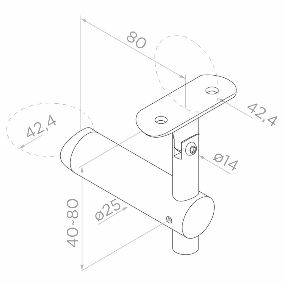 Postal – akseliaalinen nivellev pylvään ja käsijohtimen kiinnitys 42,4 mm AISI 304 satiini