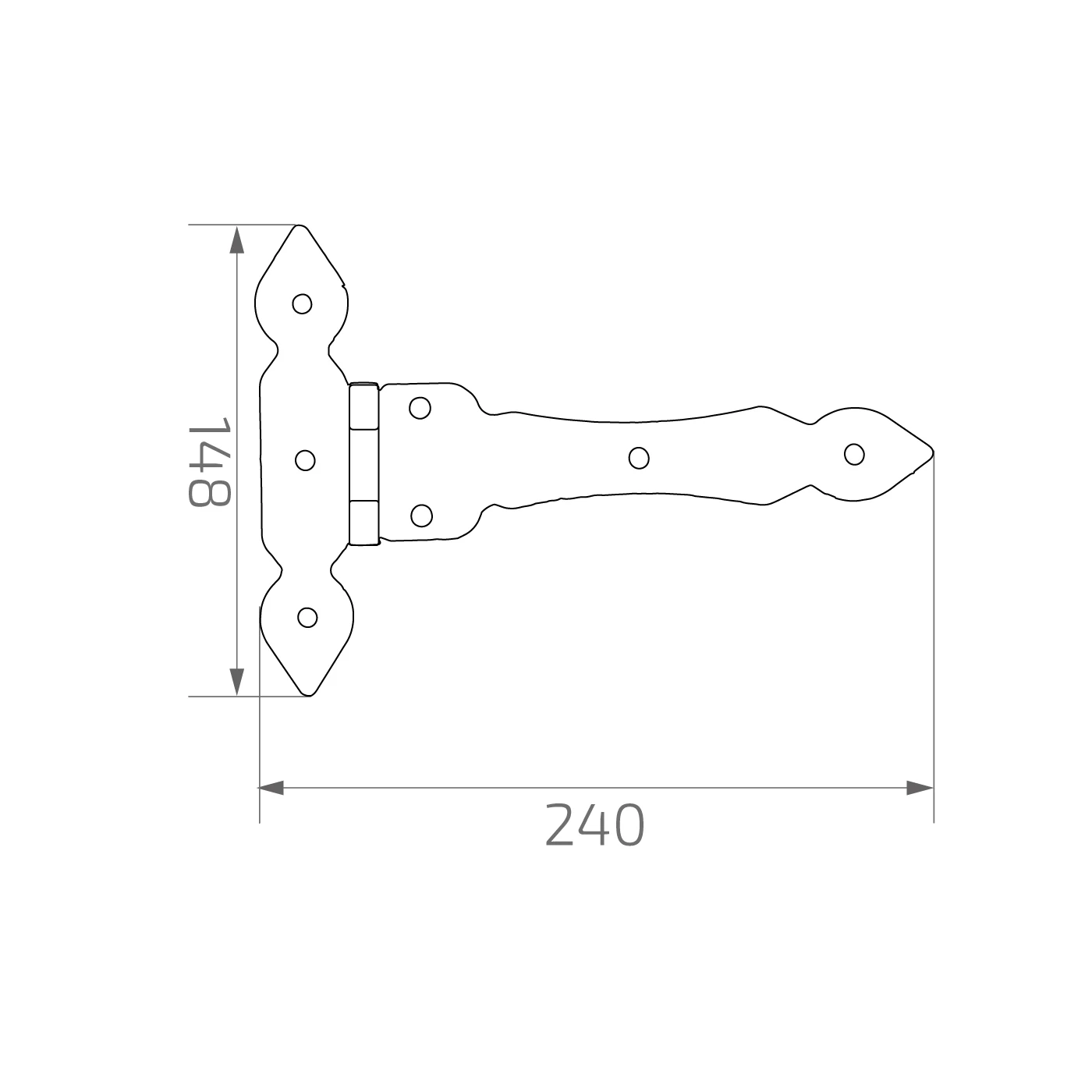 Koristeellinen nauhasarana Postal T-muodossa on luja, teräksinen kovikkuusosa, joka on tarkoitettu porttien, aidanporttien, puuovien ja muiden rakenteiden asennukseen, joissa toimivuuden lisäksi estetiikka on tärkeää. Koristeellinen, vasaroitu pinta antaa saranalle sepän luonteen, ihanteellinen maalaisten ja perinteisten tyylien mukaiseen istutukseen.