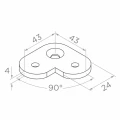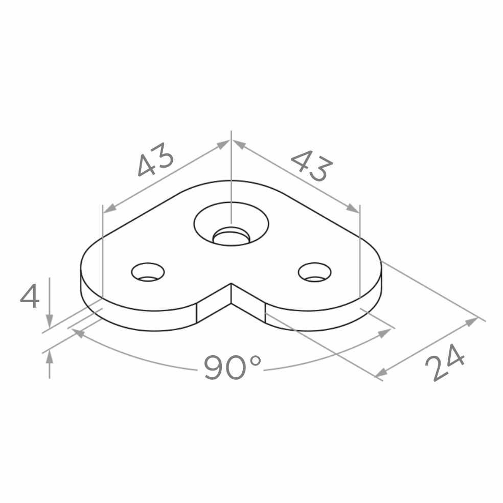 Kulmalevyteline tasaisten kaiteiden järjestelmään, tarkoitettu kaiteiden kiinnittämiseen ylhäältä tasaisiin pintoihin ruuvilla. Kompaktin kulmarakenteen 90° ja kolmen kiinnitysreiän ansiosta varmistaa vakaan ja esteettisen kulmaliiton kaidejärjestelmän elementtien välille.