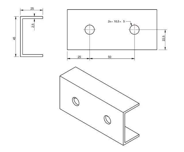 Profiililiitin alumiinista 6060, 10cm, 10mm reiät, profiilien jatkamiseen.