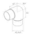 Liitin on suunniteltu kaidejärjestelmään, joka perustuu putkeen Ø 42,4 mm — yhteen ruostumattomien teräskaiteiden suosituimmista standardeista. Polveke toimii samanaikaisesti rakenteellisena (käsijohdeosuuksien liittäminen suorassa kulmassa) ja koristeellisena (kulmien esteettinen viimeistely) elementtinä. Soveltuu sekä sisä- että ulkokäyttöön — AISI 304 teräs tarjoaa korkean korroosionkestävyyden tavallisissa käyttöolosuhteissa.