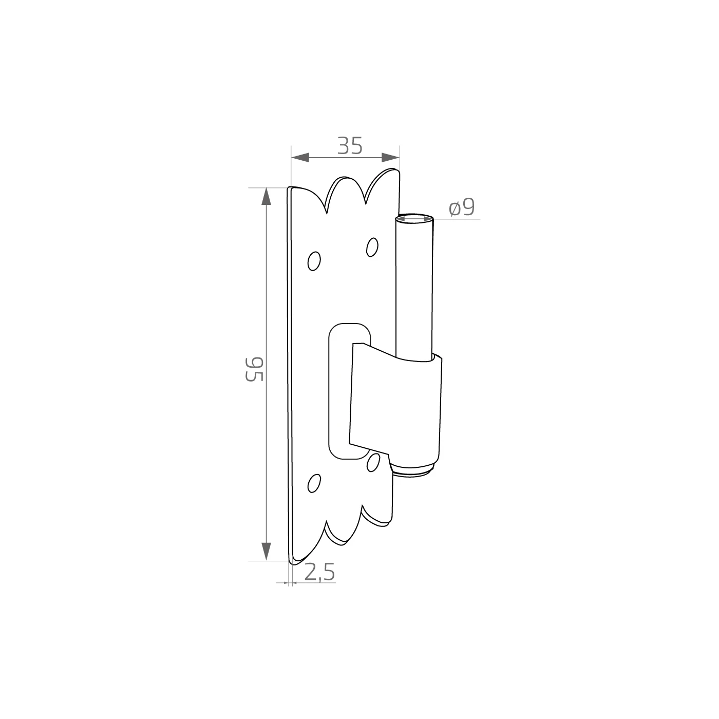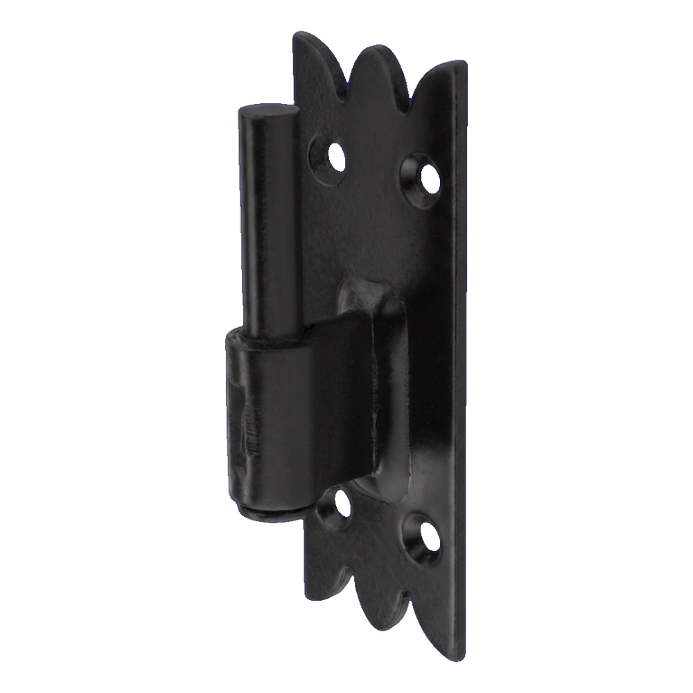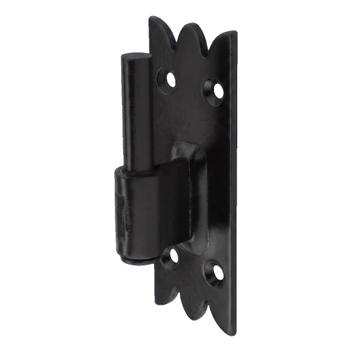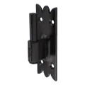 Rakennuskiinnike ikkunaluukku koristeellinen mustassa värissä tarkoitettu ikkunaluukkujen liikuteltavaan liittämiseen karmiiin tai runkoon. Koristeellisesti viimeistelly kiinnityspelti ominaislaatuisella hammastettujen reunojen kuviolla mahdollistaa kiinnikkeen esteettisen sovittamisen perinteisiin ja rustiikin julkisivuihin. Vankka rakenne sinkitystä teräksestä suojattuna öljymaalilla takaa korkean korroosionkestävyyden sekä mekaanisten vaurioiden kestävyyden — jopa vaativissa sääolosuhteissa.