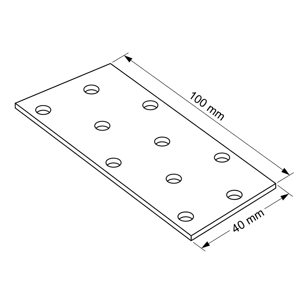 Tasaisesti jakautuneiden reikien universaali reikäkuvio mahdollistaa levyn käytön monissa liitosvarianteissa — sekä symmetrisissä että siirretyissä. Kompakti 40×100 mm koko 2,0 mm paksuudella tekee liitoslevystä riittävän lujatekoisen tyypillisiin puusepäntöihin, ja samalla helposti varastoitavan ja kuljetettavan jopa suurissa määrissä.