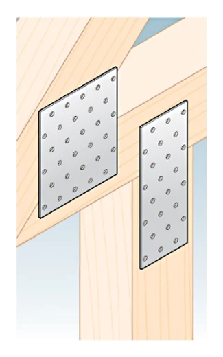 Reikälevyjä käytetään yleisimmin kattoristikoiden asennuksessa, jossa ne tarjoavat kestävän ja vakaan liitoksen kattotuolien, pystypilarien ja tukivarsien välille. Ne soveltuvat myös kaikkialle, missä tarvitaan nopeaa ja toistettavaa tasaliitoslevyjen asennusta — kattorakenteista pergoleihin, katoksiin ja talousrakennuksiin. Kiinnitys toteutetaan ø4 mm rengasnauloilla, jotka takaavat varman kiinnityksen puuhun ja liitoslevyn ilmoitetun kantavuuden täyden hyödyntämisen.