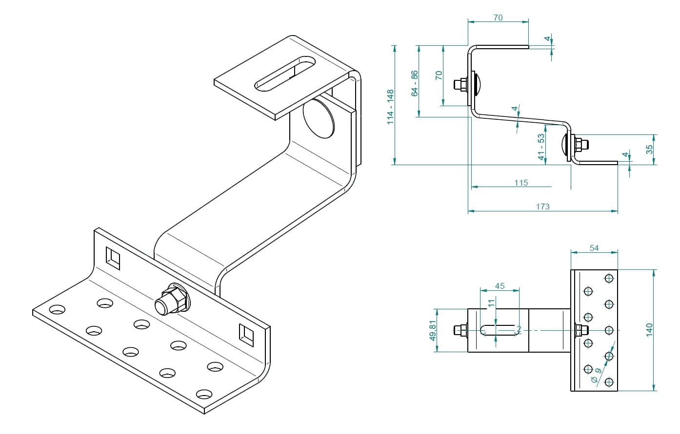 - Leveä ja säädettävä tuki on valmistettu 4 mm ja 5 mm paksuisesta levystä, ja Z-profiili 30x5 mm lattaraudasta.