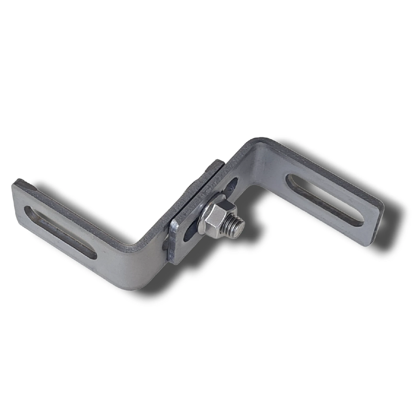 Säädettävä kiinnike -sarja on suunniteltu erityisesti aurinkosähköjärjestelmien vaivattomaan asennukseen. Jokainen sarja sisältää 2x säädettävä kulmarauta 65x65mm, 1x lukitusruuvi M10x25 DIN 603 ja 1x kuusiolaippamutteri M10 DIN 6923 uurretulla laipalla.
