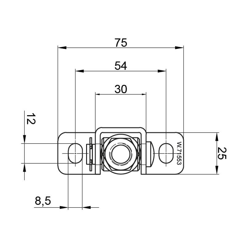 - Asennusreiät (papukivet): 12 × 8,5 mm