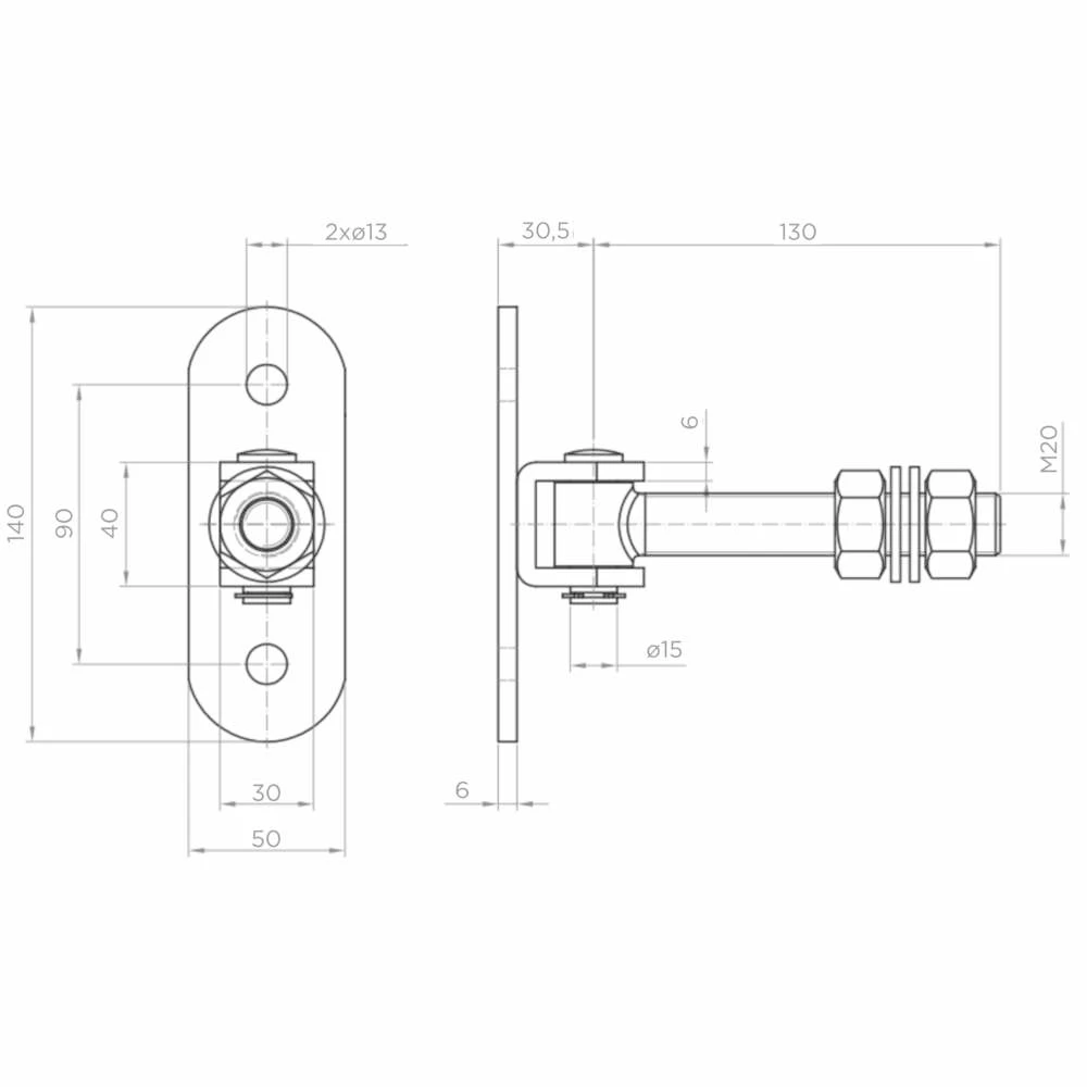Säädettävä sarana M20 kilpikoru 140×50 mm on kestävä helasosa, joka on tarkoitettu kääntyvien porttien ja sisäänkäyntiporttien asennukseen. M20-kierreallosteinen rakenne mahdollistaa portin riippumisen tarkan säätämisen milloin tahansa — sekä asennuksen jälkeen että käytön aikana, esim. rakenteen painumisen tai metallin lämpömuodonmuutosten yhteydessä äärimmäisissä lämpötiloissa.