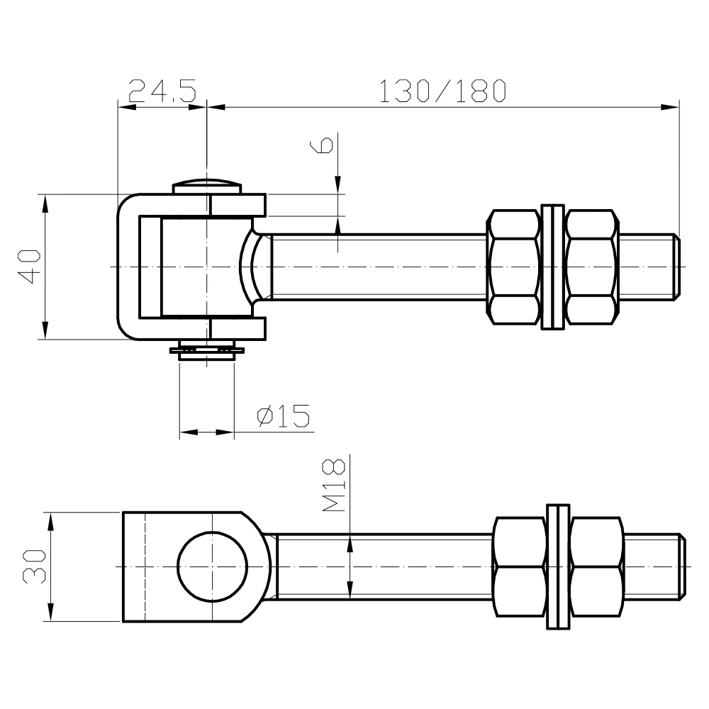 Säädettävä kiinnitettävä sarana M18 L180 mm on kestävä teräksinen ripustusosa, joka on suunniteltu porttien ja kevyiden siipiliukuporttien asennukseen. M18 kierre säätömuttereilla mahdollistaa siiven tarkan säädön sekä asennuksen aikana että käytön aikana - ilman koko ripustuksen purkamisen tarvetta.