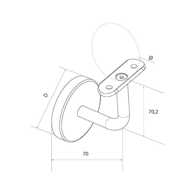 Kiinnike on varustettu peitekannen, jonka halkaisija on 70 mm, joka peittää tehokkaasti kiinnitysreiät ja kiinnityslevyn, varmistaen siistin lopputuloksen. Kiinnityslevyssä on 3 reikää, mikä helpottaa tarkkaa ja vakaata kiinnittämistä seinään – jopa haastavissa asennusolosuhteissa. Harkitun rakenteen ansiosta asennus sujuu sujuvasti, mikä säästää asennusryhmien aikaa työmaalla.