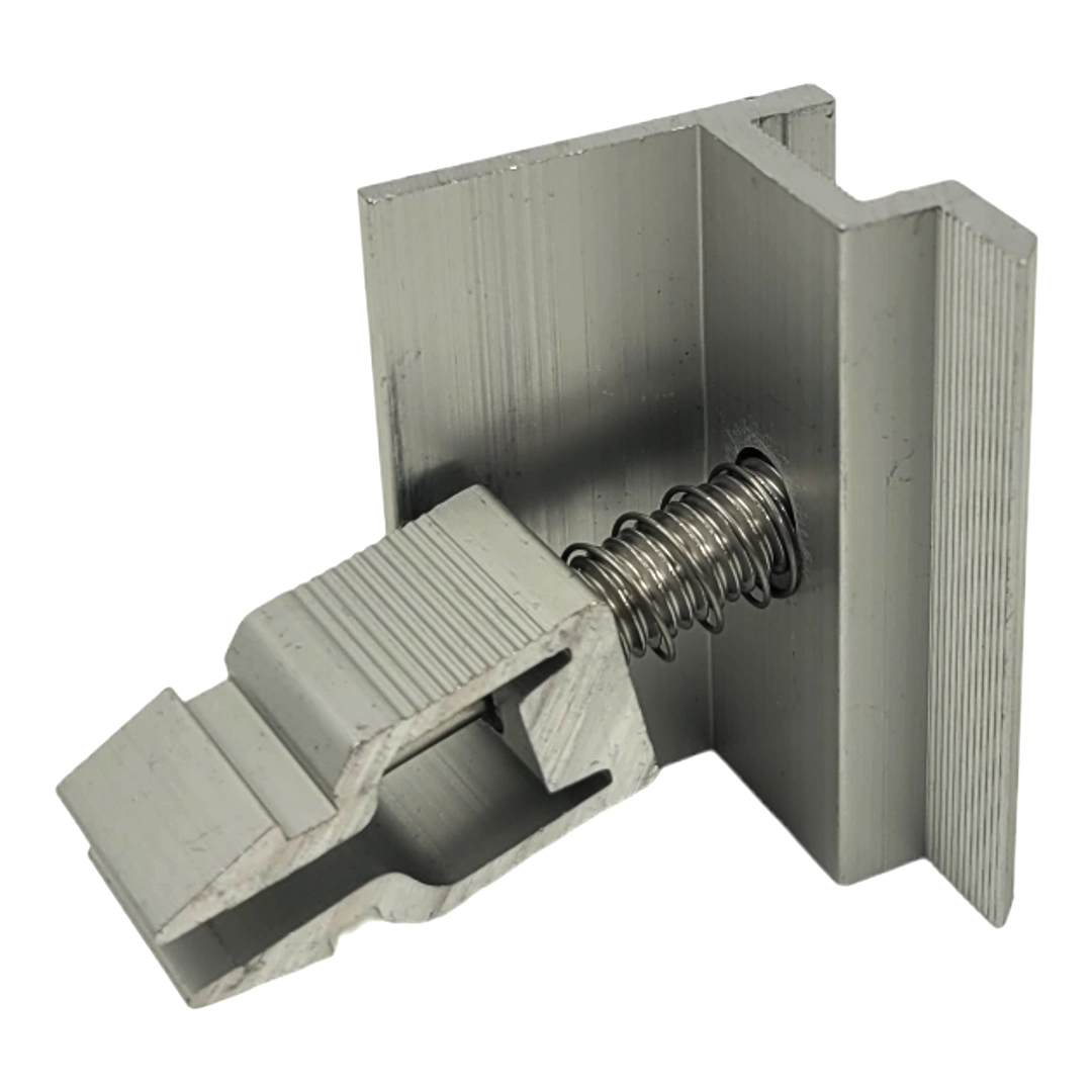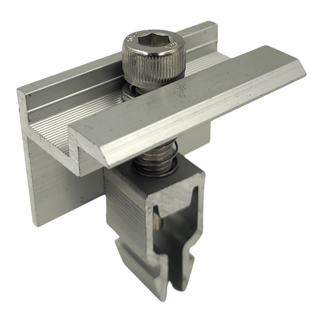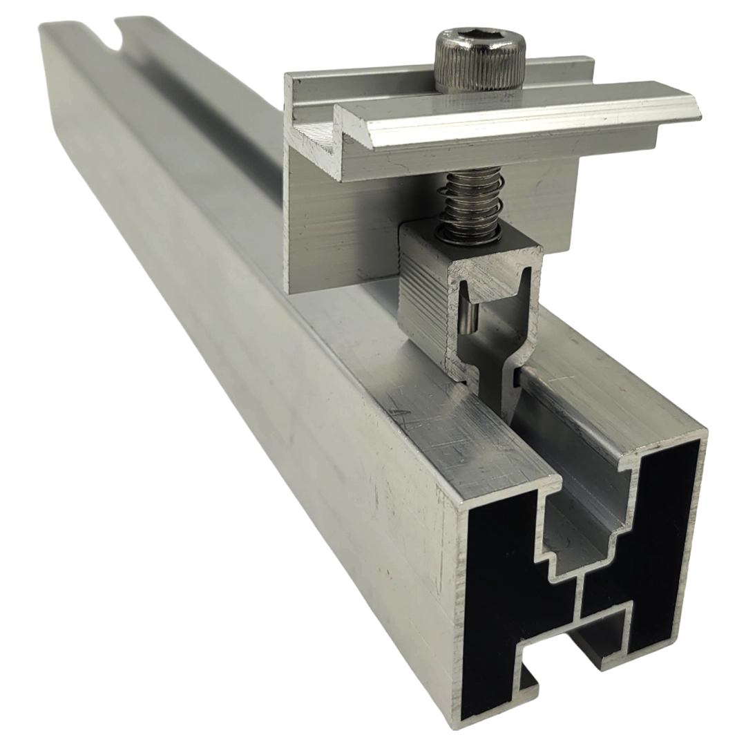 Sivupainekiinnike alumiinia 6060 hopea - Napsautussalpa mutterilla ja pultilla, hopea L50 (tyyppi 2) aurinkosähkömoduulien kiinnittämiseen.