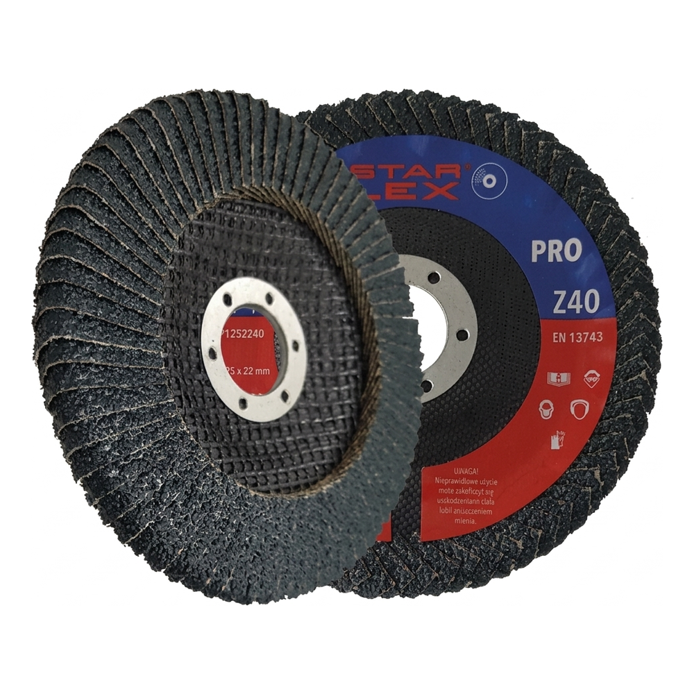 Starflex PRO Z40 liuskalaikka on luotettava työkalu asennus- ja lukkosmithliikkeille, jotka tarvitsevat nopeaa ja puhdasta saumojen viimeistelyä teräsrakenteiden, kaiteiden, porttien, aitojen ja teollisuusasennusten asennuksessa. Kartiomainen T27-rakenne varmistaa optimaalisen työkulman nurkissa, ja 40-raetiheydellä varustettu zirkoniajyvä takaa aggressiivisen poiston säilyttäen samalla hallinnan työstettävän pinnan suhteen.