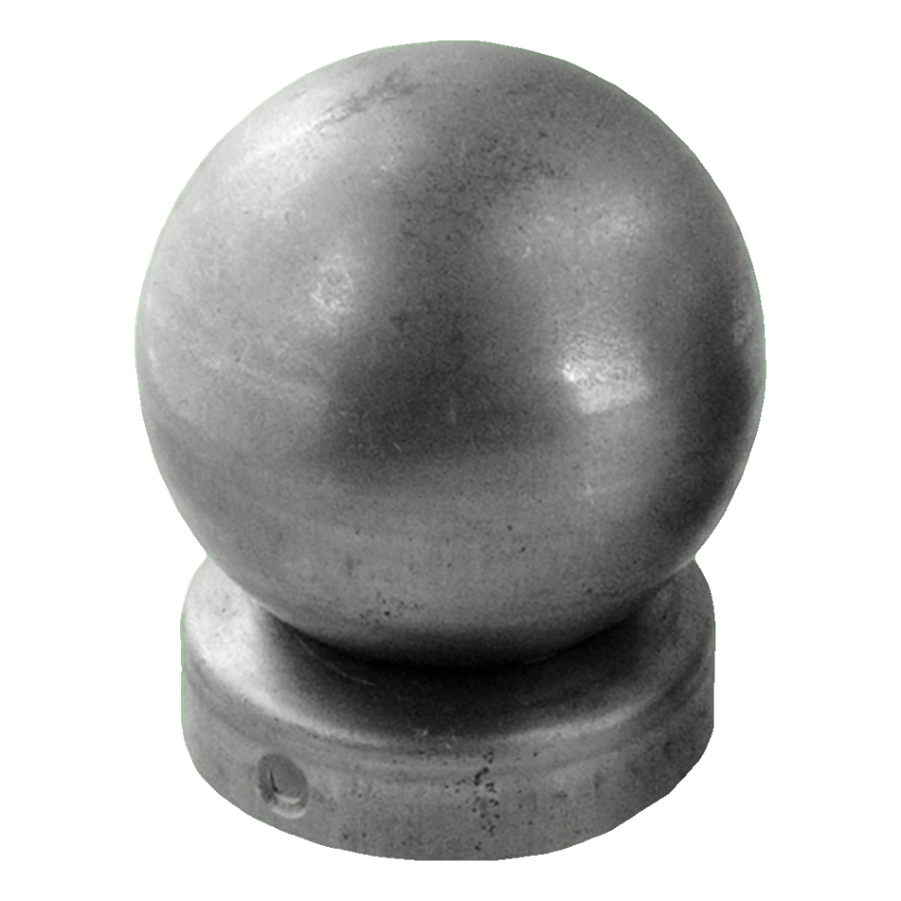 Teräksinen aitakatos koristepallolla ø 60 mm on tarkoitettu asennettavaksi pyöreille tolpille, joiden halkaisija on ø 60 mm (2"). Tukeva tolpan yläosan suoja, joka suojaa korroosiolta, jota sateenvesi ja kosteus aiheuttavat, samalla antaen aidalle esteettisen, koristeellisen viimeistelemisen.