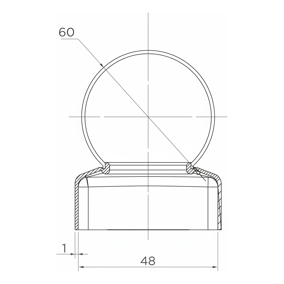 Teräksinen aitakatos koristepallon kanssa tarkoitettu asennettavaksi pyöreille tolpille, joiden halkaisija on Ø 48 mm (1,5"). Pallonmuotoinen koriste, jonka halkaisija on Ø 60 mm, antaa aidalle elegantin, viimeistellyn ulkonäön samalla kun se suojaa tolppaa tehokkaasti korroosiolta, joka johtuu sadevedestä ja kosteudesta.