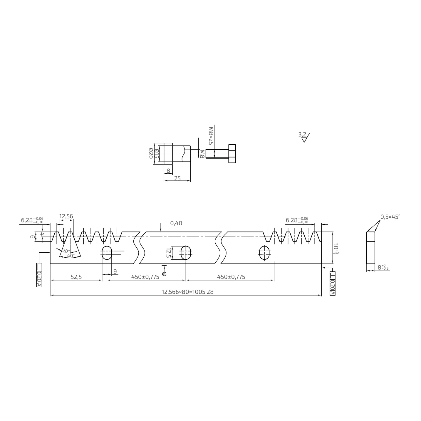 Galvanoitu teräksinen hammasrima 1000 mm – moduuli 4 liukuportteja varten