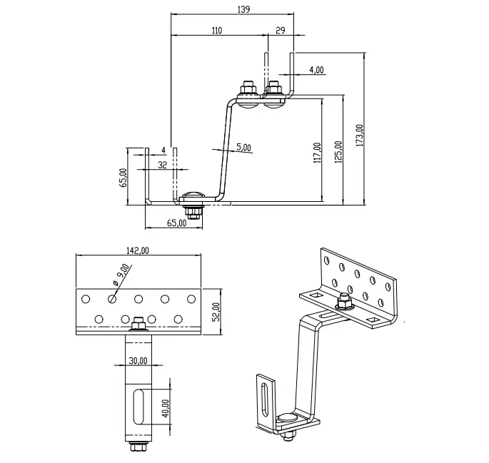 Kattokiinnike aurinkopaneelien asennuskiskojen kiinnittämiseen keraamisia ja betonisia kattotiiliä käyttäville katoille. Takaa koko rakenteen asianmukaisen vakauden.