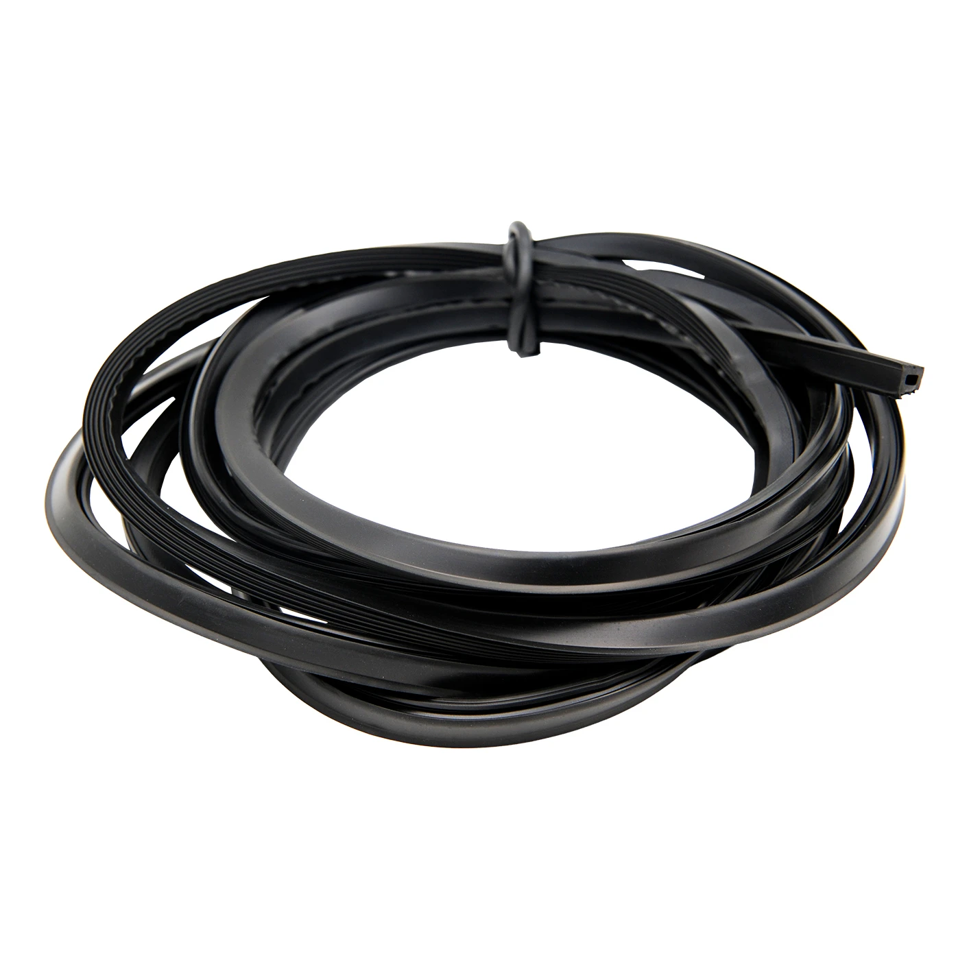 Sarja sisältää kaksi erilaista mustaa kumitiivistettä, joiden kummankin pituus on 5000 mm. Etu- ja takatiiviste eroavat poikkileikkausprofiililtaan — leveämpi varmistaa lasilevyn puristuksen ja vaimennuksen profiilin puolelta, kun taas kapeampi stabiloi lasin ulkopuolelta. Molemmat tiivisteet eliminoivat tehokkaasti tärinän ja kompensoivat lasin mittatolerannit.